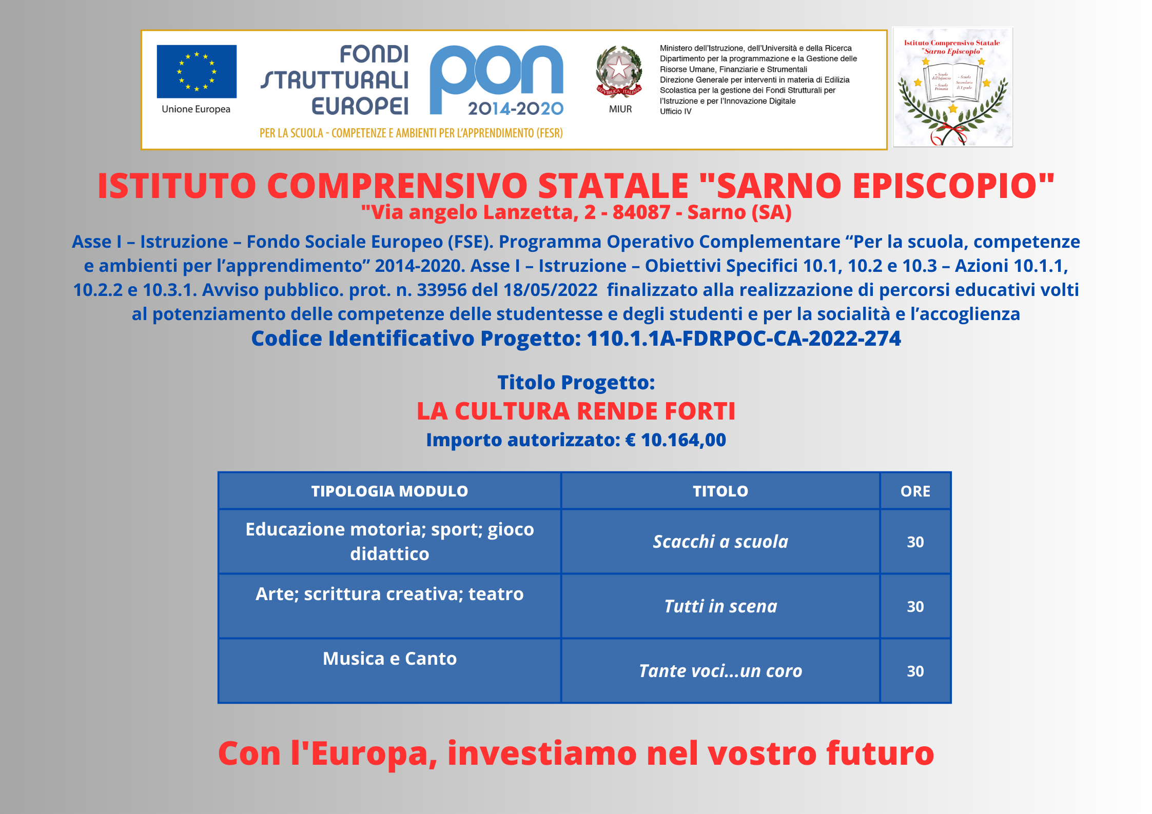 Disseminazione PON -10.1.1A-FDRPOC-CA-2022-274 |
